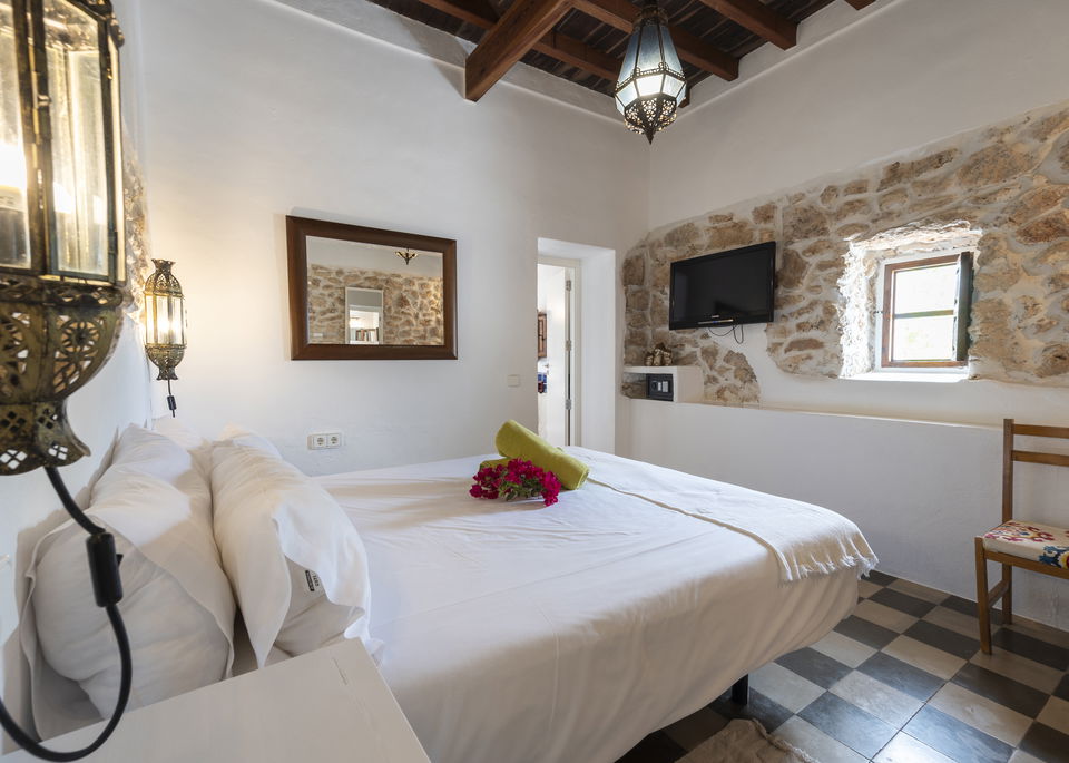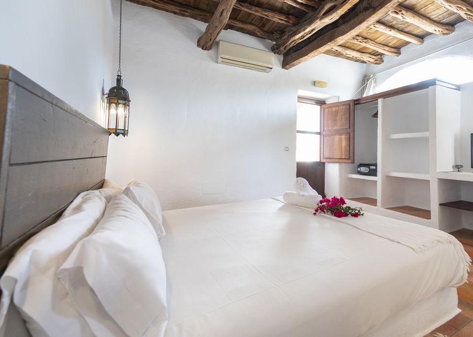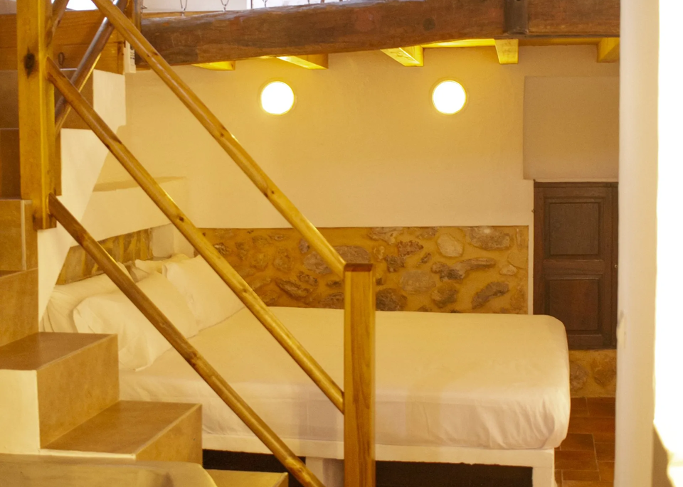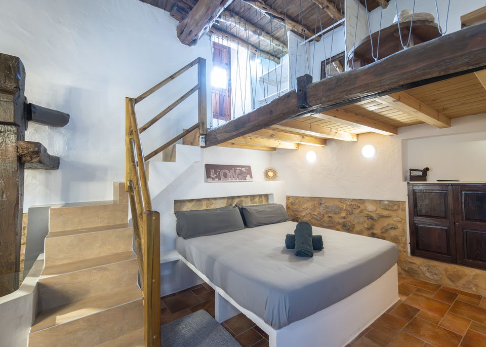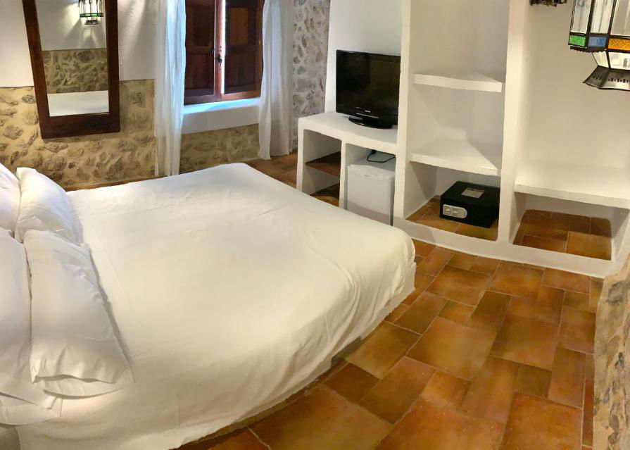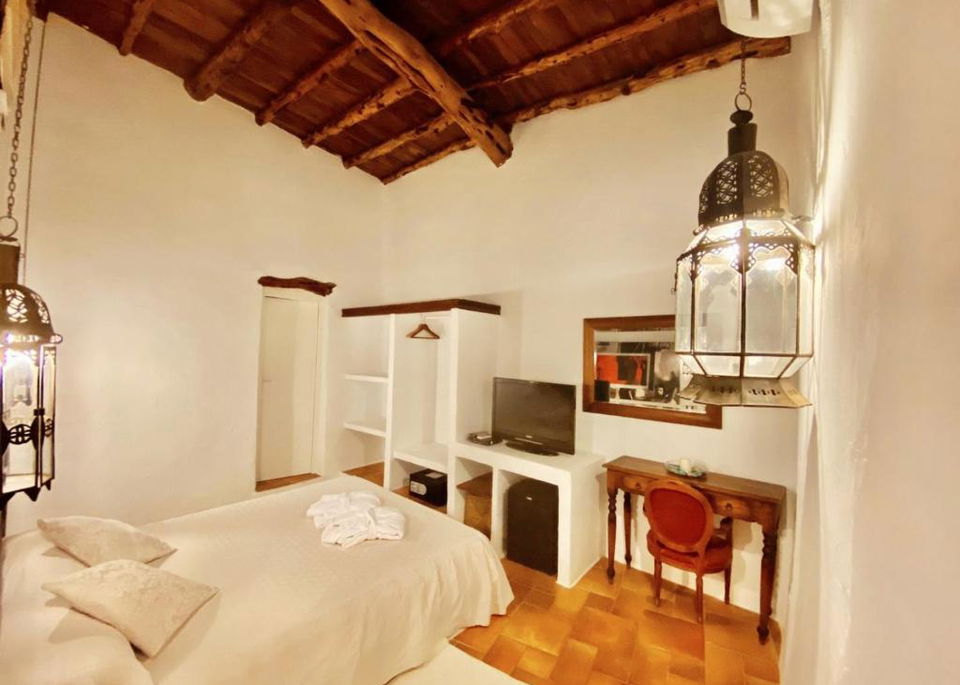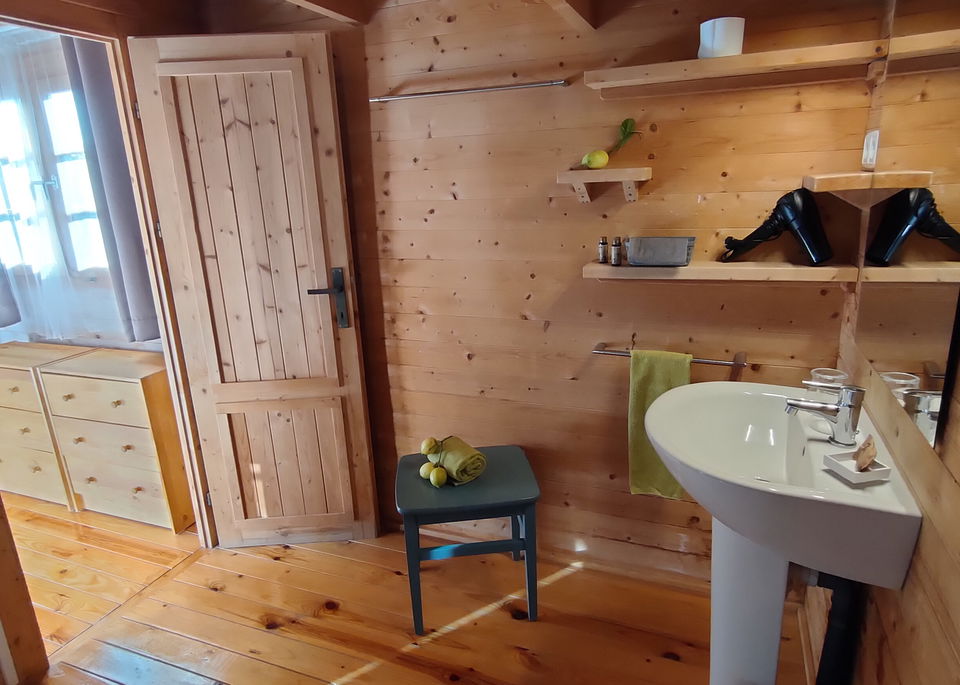 Para los amantes de la naturaleza que deseen disfrutar de estancia más rústica, situada aparte de la casa principal, alojarse en nuestro bungalow de madera puede ser una opción excelente. Esta casita de madera, de veinte metros cuadrados, es perfecta para dos personas. Dispone de una cama doble y de un baño con ducha, artículos de higiene personal, secador de pelo y toallas. También posee televisor de pantalla plana, aire acondicionado, wifi gratuito y minibar (de pago). Todas con cama doble, no divisible.