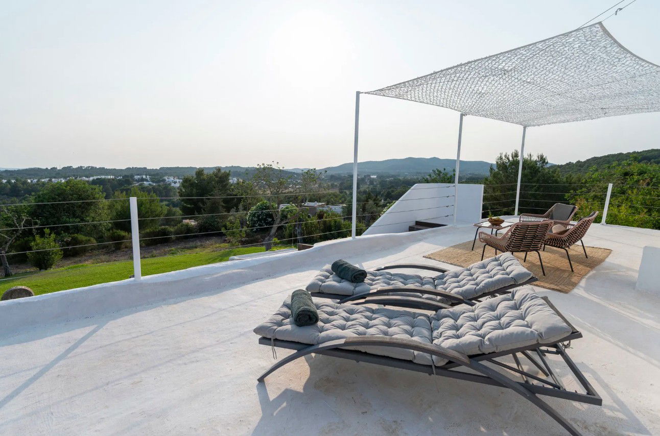 Con impresionantes jardines, una piscina de agua salada, solárium equipado con hamacas, grandes terrazas y rincones chill out ideales para descansar, esta casa tradicional ibicenca es única.